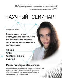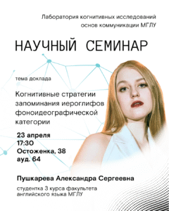 Кроме этого, будет продемонстрированы результаты исследования особенностей семантической памяти у изучающих иностранный язык.